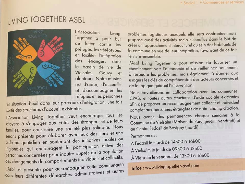 Living Together souhaite lutter contre les préjugés, les stéréotypes, aider à une meilleure intégration dans notre commune, créer un pont qui réunit tout le monde en cohabitation harmonieuse.